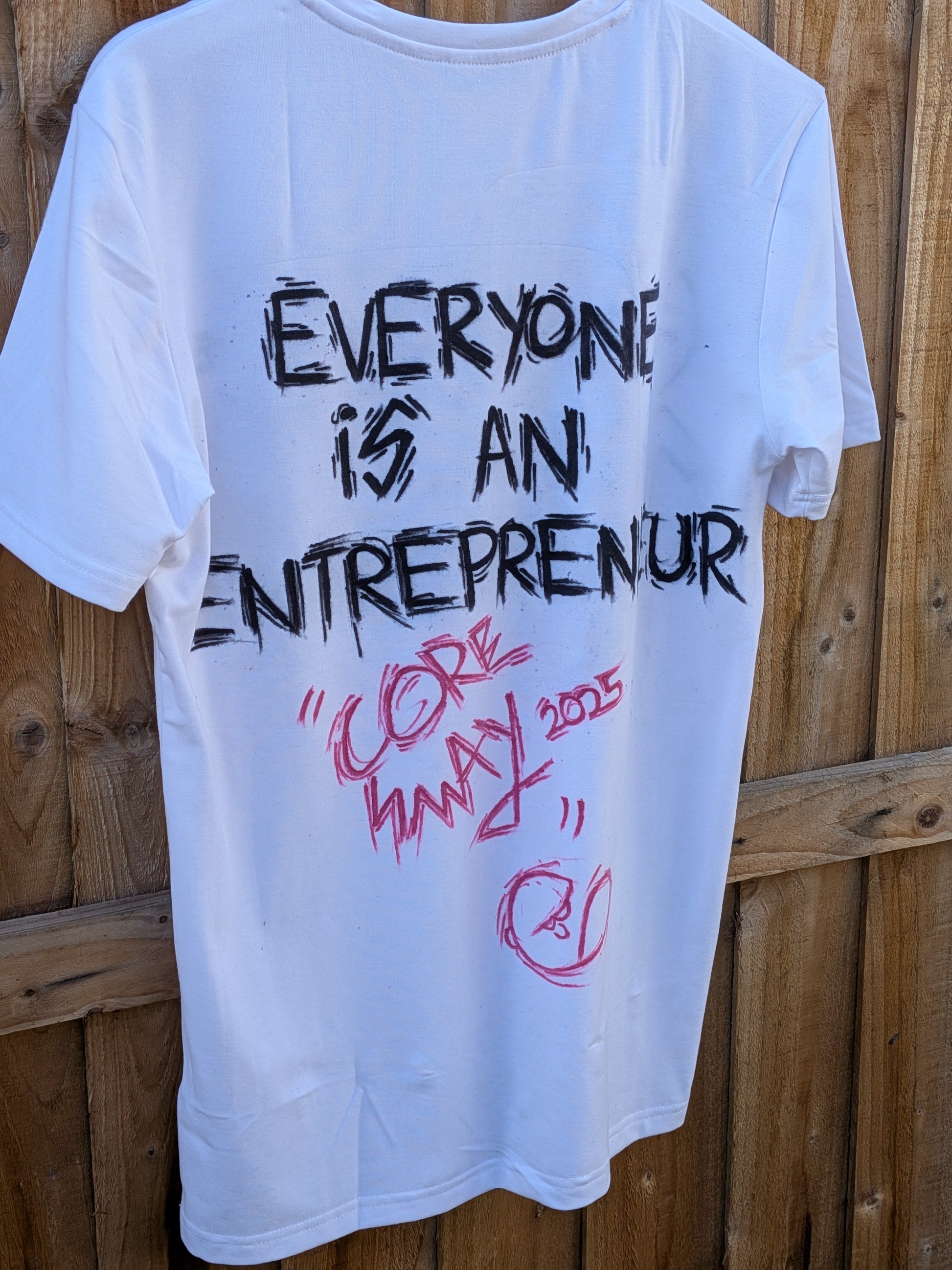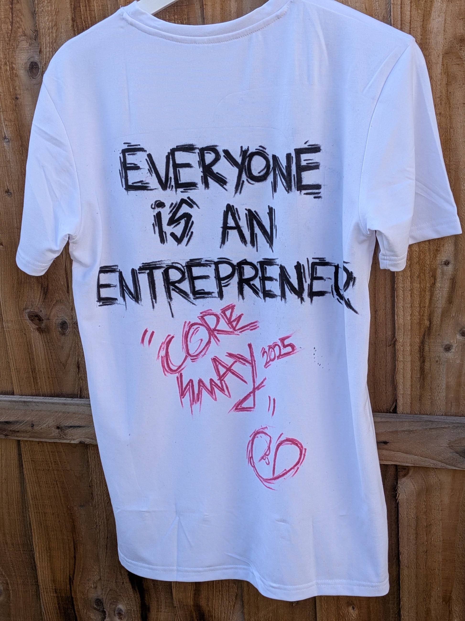 Premium cotton tee turned into a piece of unique, wearable art by Core Sway using fabric pens heat pressed irect to garment.