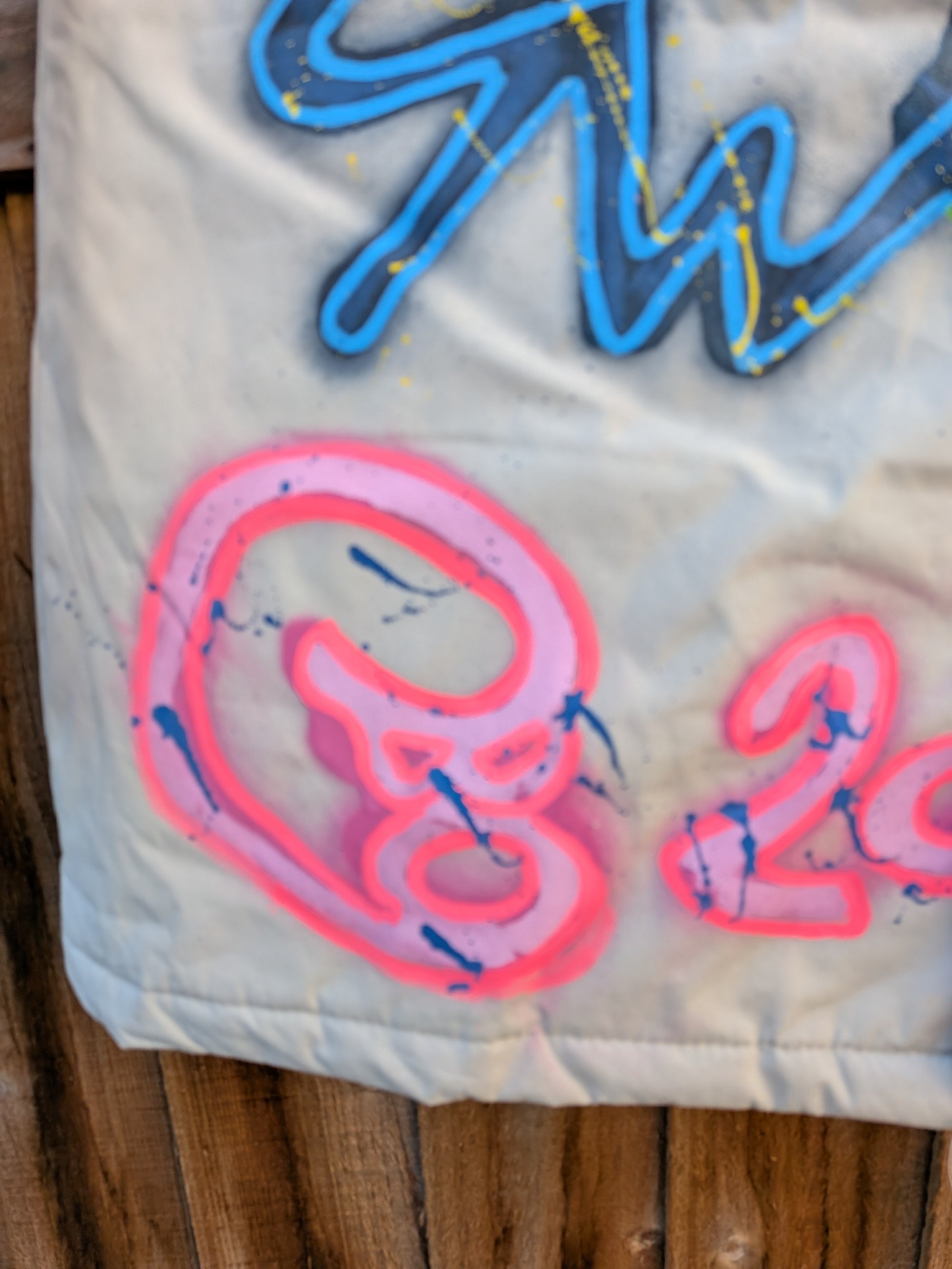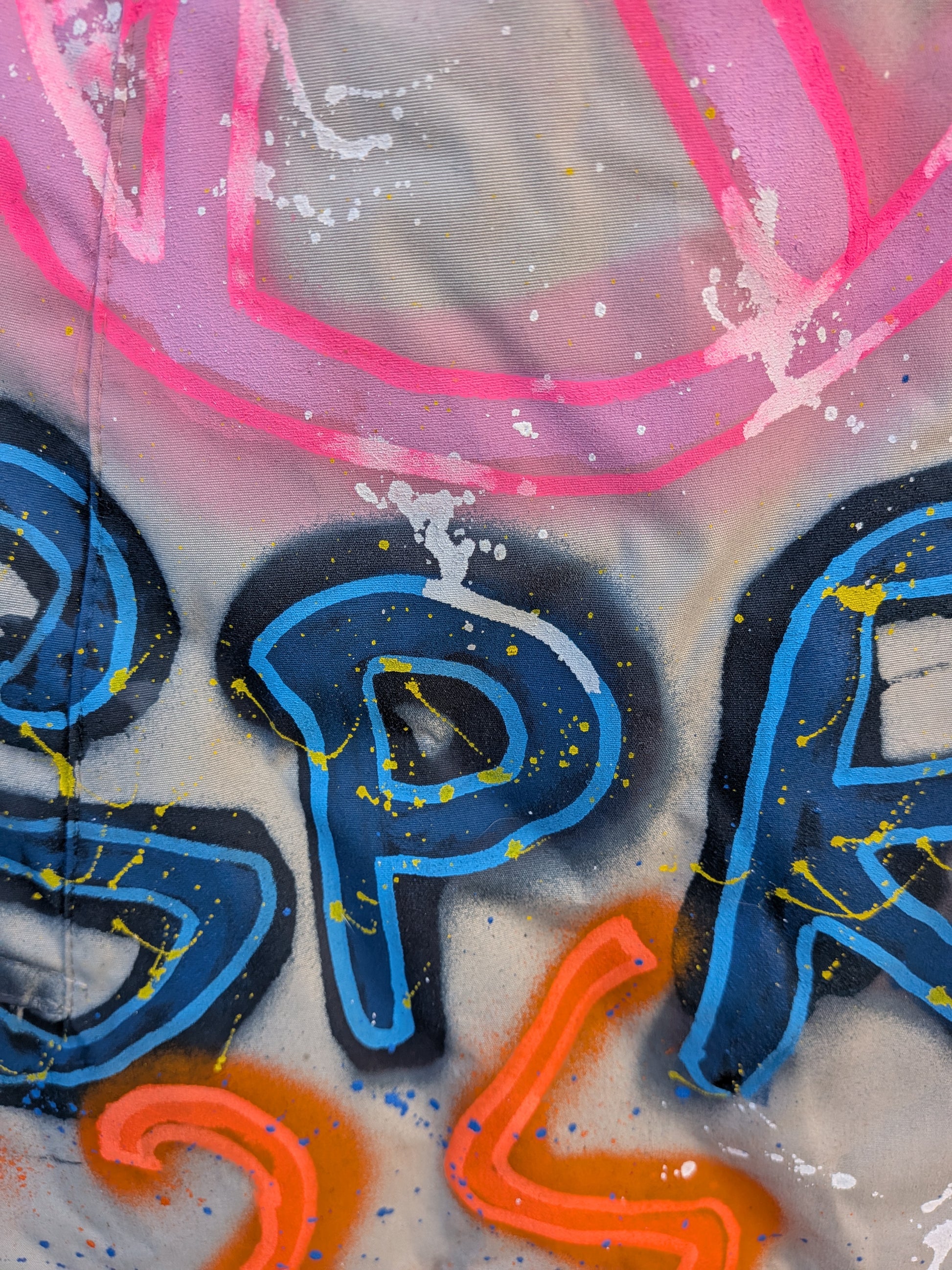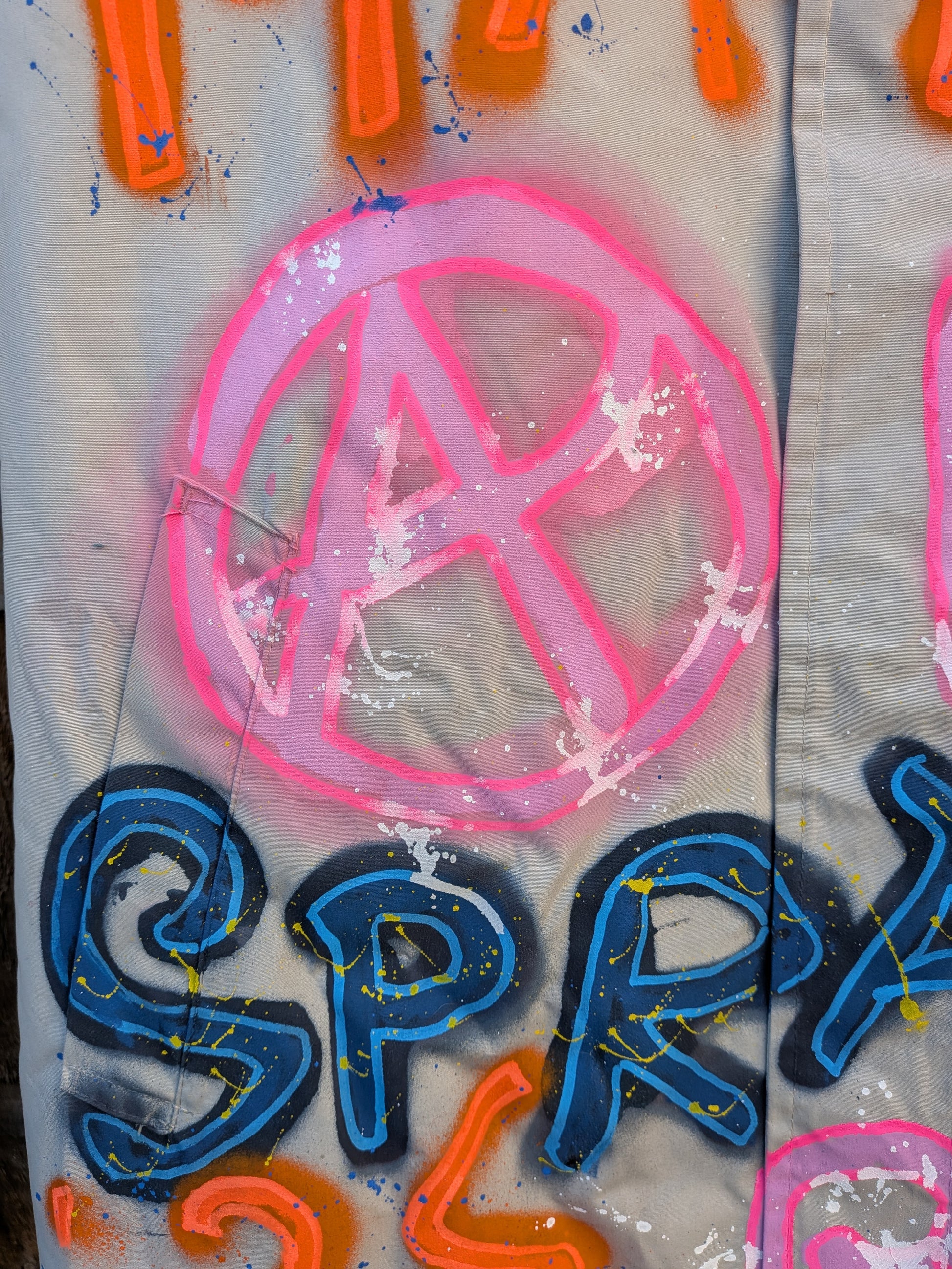 Preloved item turned into a piece of unique, wearable art by Core Sway using spray paint and paint pens direct to garment.