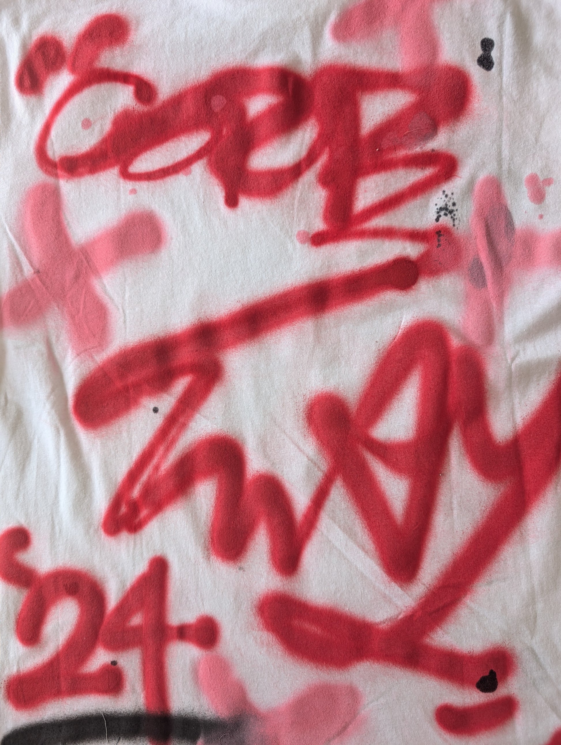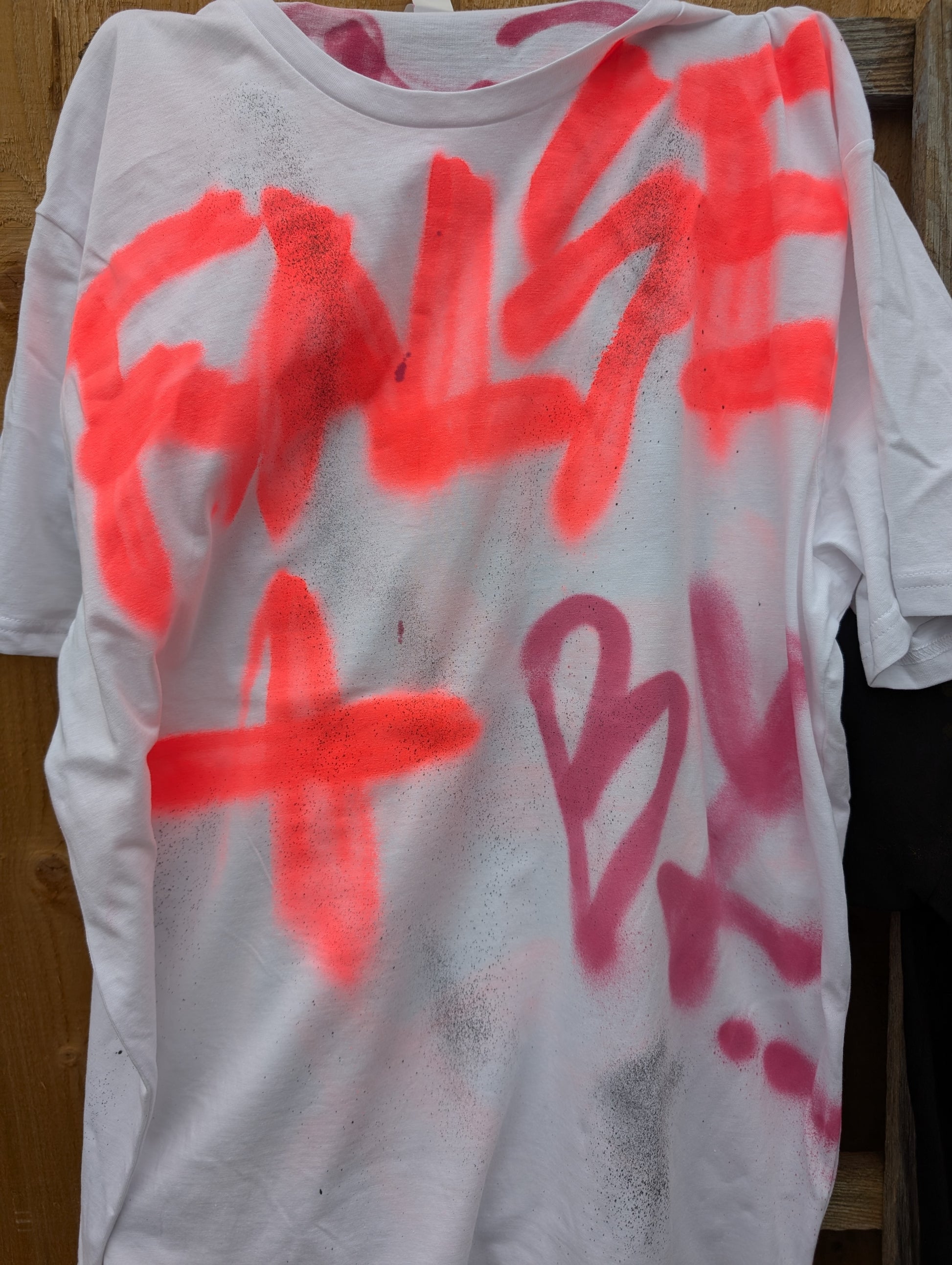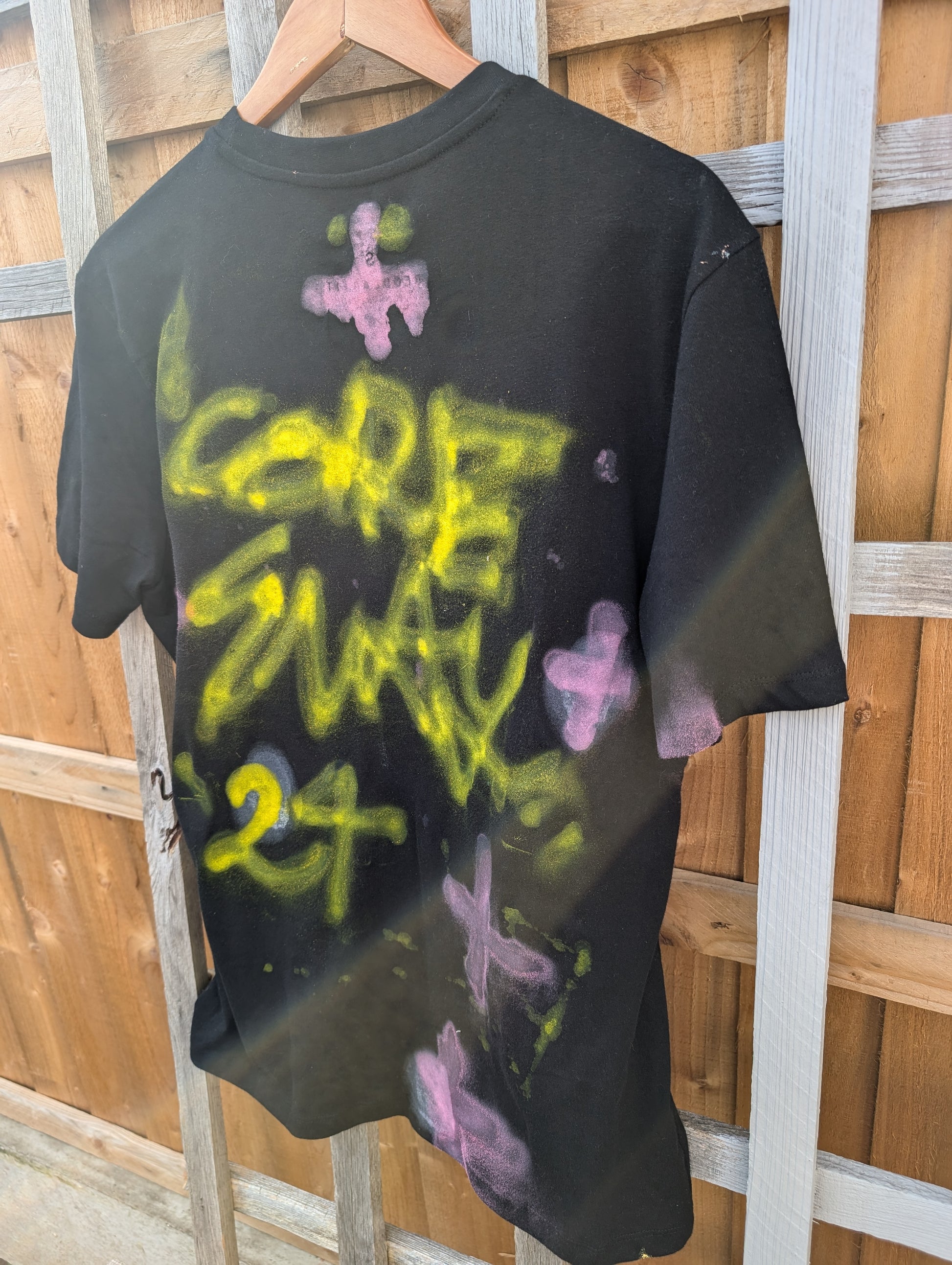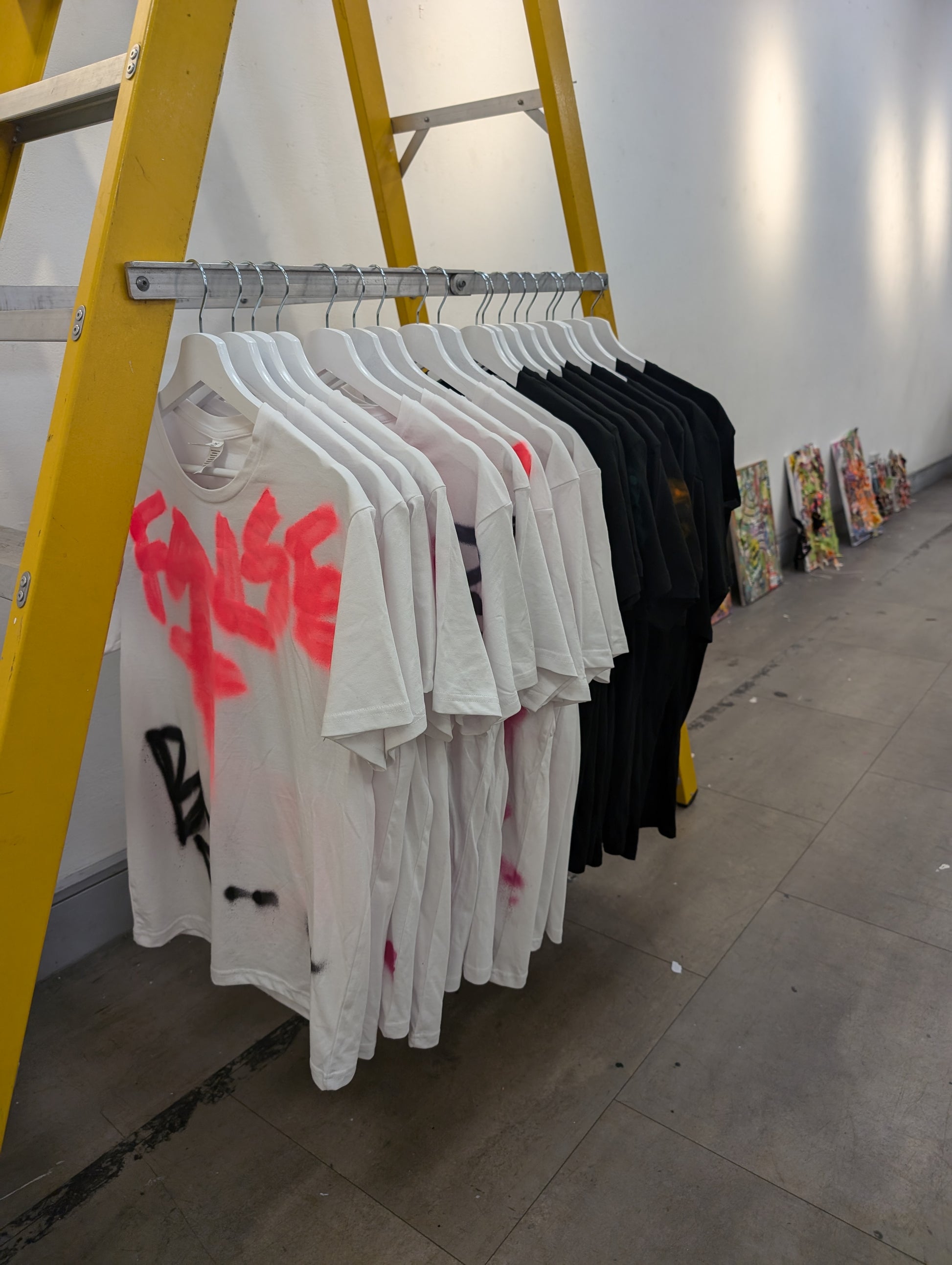 Made to order one of a kind t-shirts hand sprayed by Core Sway in his art studio.