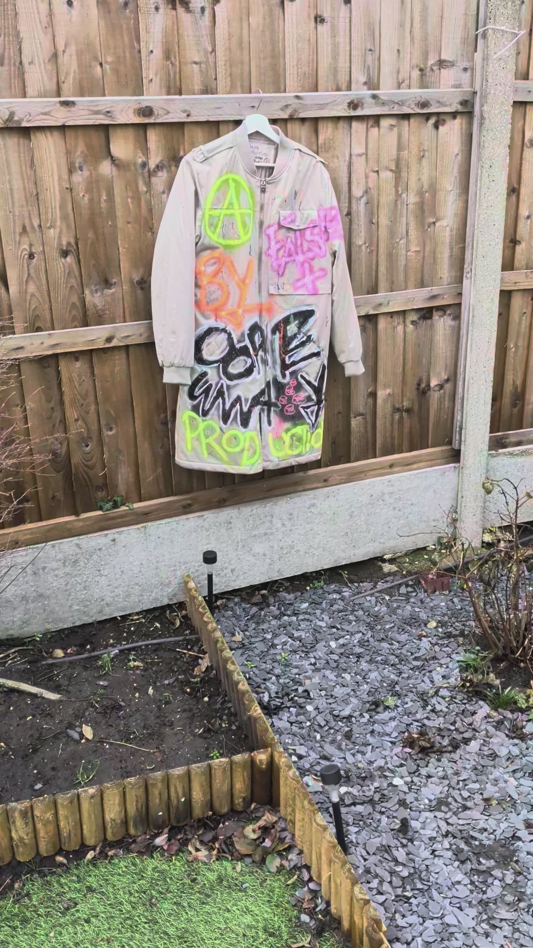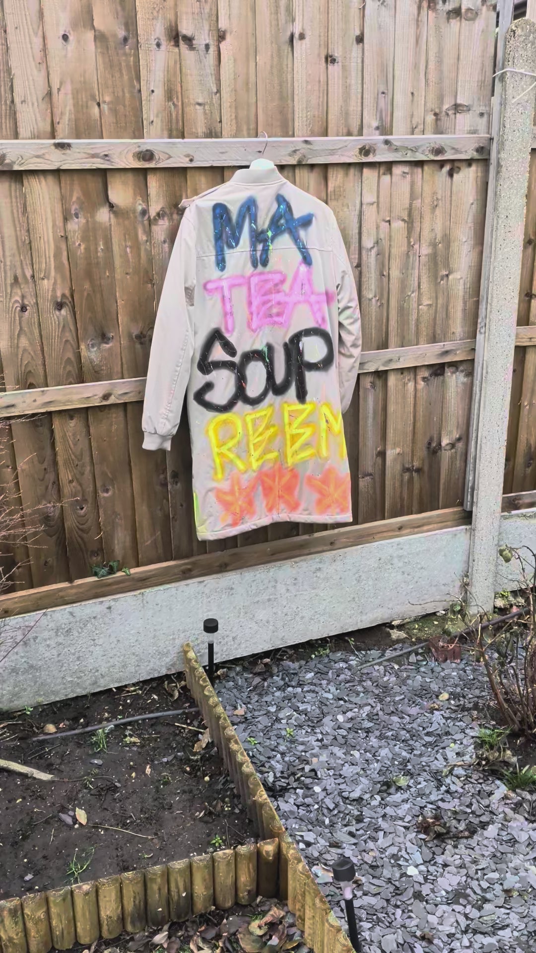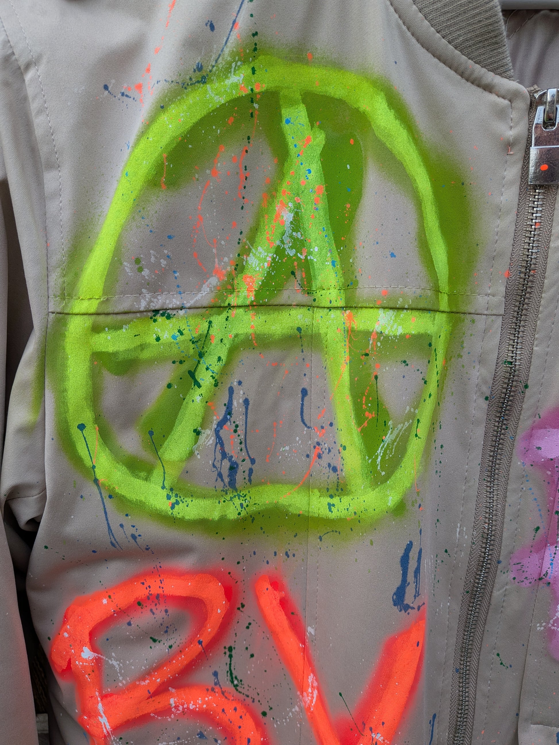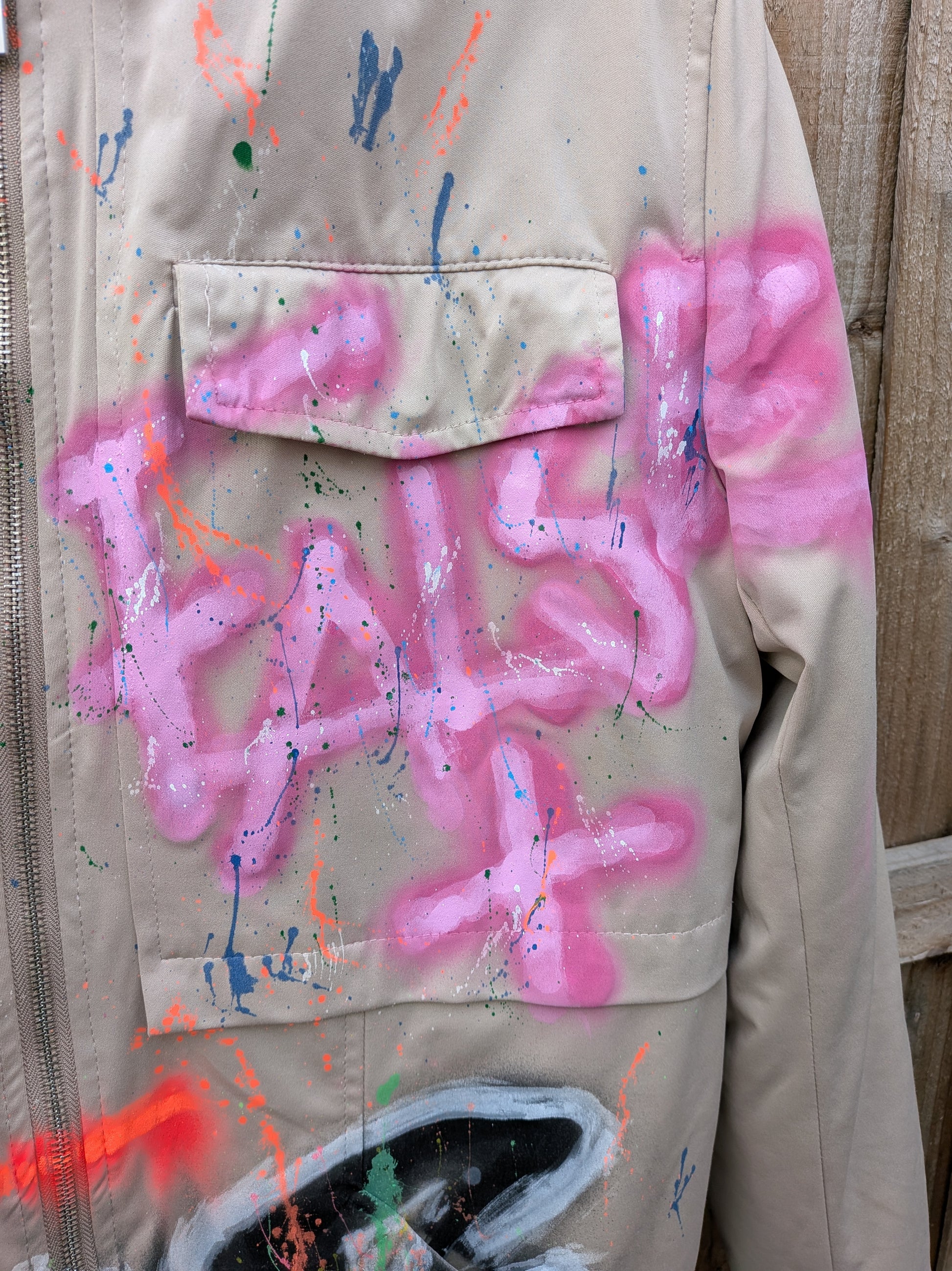 Hand sprayed & painted one of a kind, upcycled coat for AW25